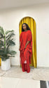 Laissez-vous séduire par l’harmonie parfaite de cette robe plissée en viscose, accompagnée de son pantalon assorti.